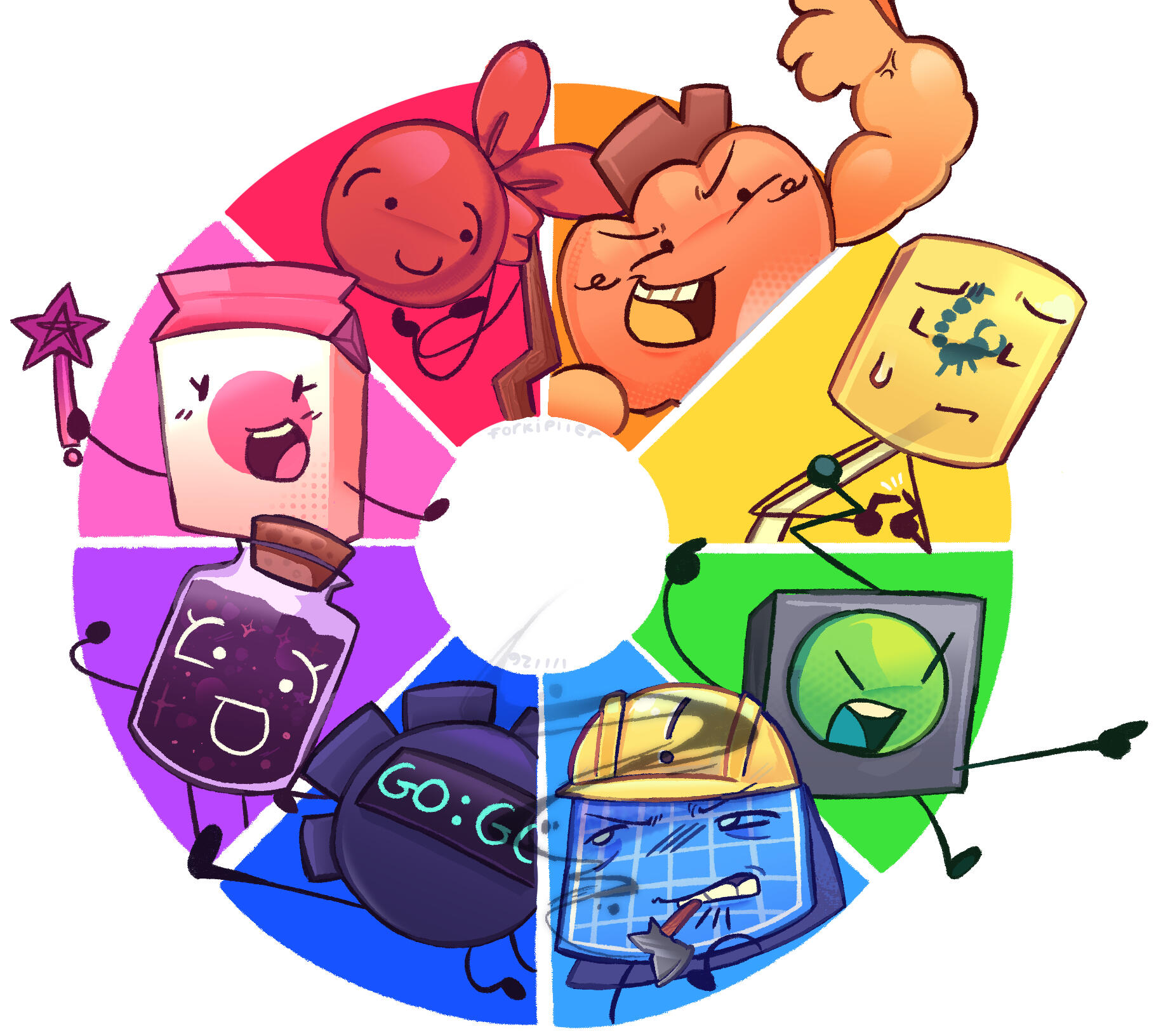 Color wheel challenge with some characters from Dial it; Battle show! a good first drawing to kick off the year. DRAWN ON: Procreate