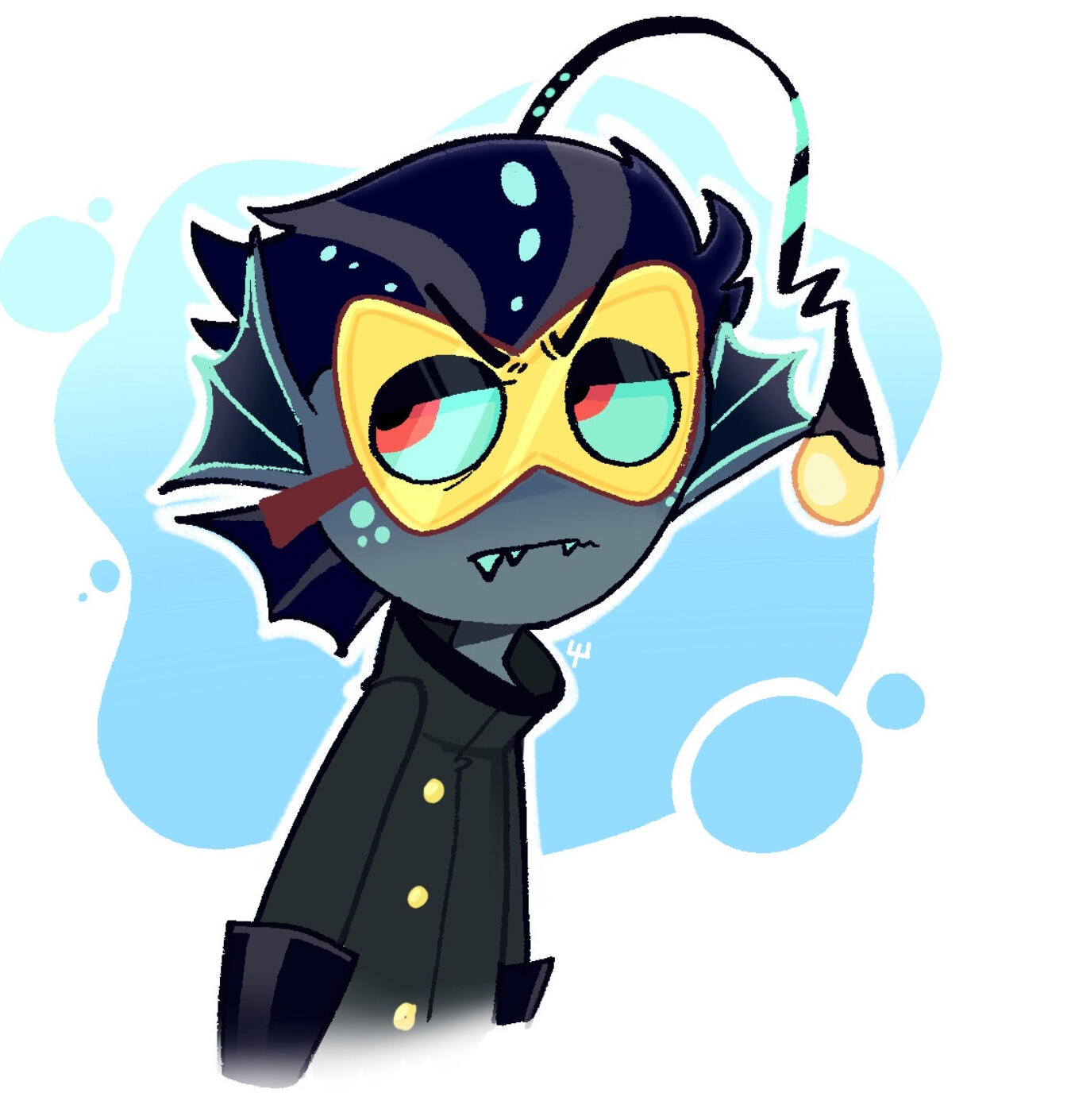 Another drawing of my favorite anglerfish - demon - mad bioscientist, baxter!! Does the hazbin hotel artwork ever end? i don’t think so. DRAWN ON: Procreate